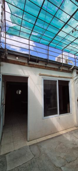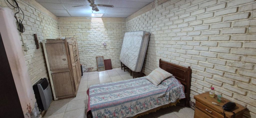 *Dormitorio: piso cerámico, muros de ladrillón pintado, techo madera y membrana, sin placard, carpintería metálica,