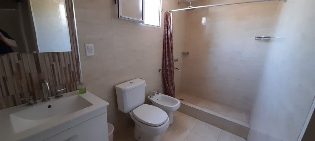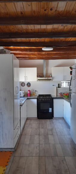 DEPTO Nº 2 PLANTA ALTA: compuesto por Cocina Comedor: pisos cerámicos, muros enlucidos y pintados, techo de madera rollizo, mesada de granito, bacha doble de acero inoxidable, bajo y alta mesada en melamina, carpintería de aluminio, PRIMER DORMITORIO: piso cerámico, muros enlucidos y pintados, techo de madera sin placard, carpintería de aluminio y madera, puerta placa, SEGUNDO DORMITORIO: piso cerámico, muros enlucidos y pintados, sin placard y baño; puerta placa; Baño: pisos y muros en cerámico, receptáculo de ducha, sanitarios, espejo y puerta placa; Terraza y Lavadero: pisos cerámicos, techo madera, calefón termotanque. SUPERFICIE: 120 m2.