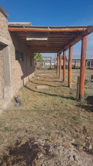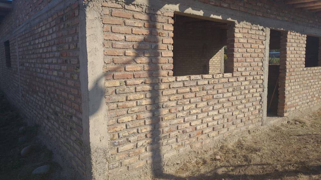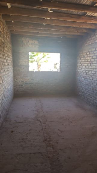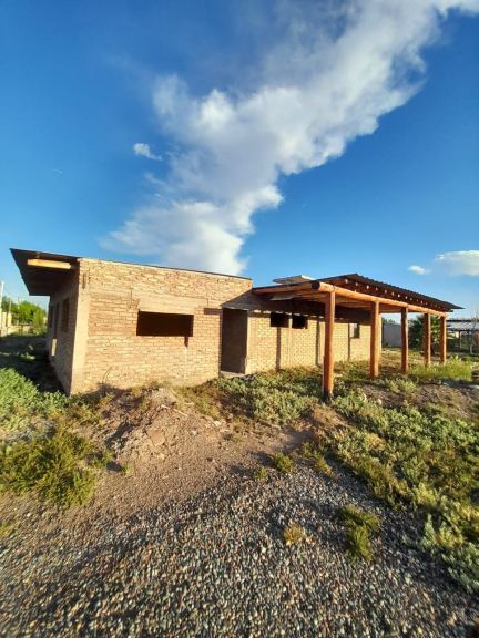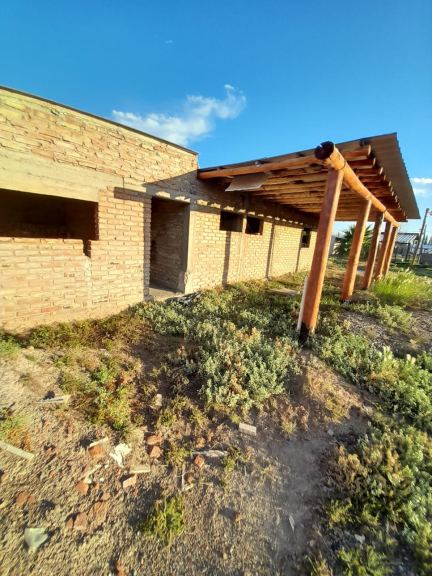 Se trata de una casa (sin terminaciones) compuesta por una Cocina comedor; Baño (sin revoque, con cañerías), Tres dormitorios: el primer dormitorio con baño y vestidor, los pisos son de hormigón, muros de ladrillos sin revoque, techo chapa aislante, y rollizo; Patio con granilla.