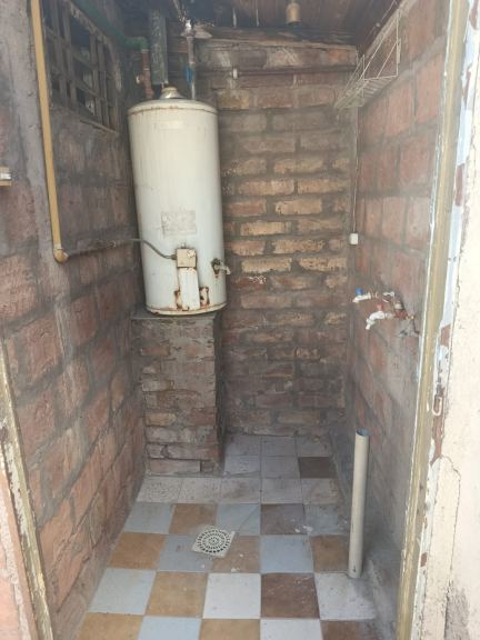 *Cocina Comedor: piso cerámico, en mal estado, mesada revestida en cerámico, alacena.